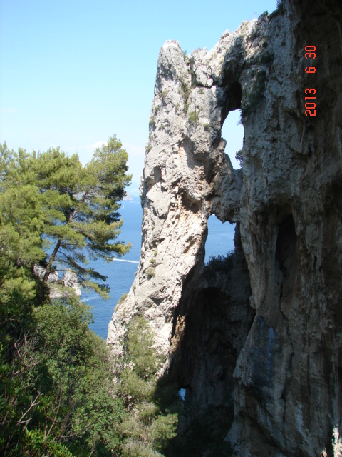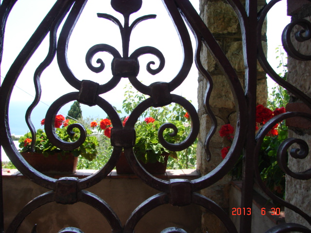 Beyond the ironwork and all the artistic grill work you will find flowers, oranges, rooftops and the Mediterranean Sea. There are plenty of signs along your path guiding you to hotels, museums and natural wonders along the way. One such natural work of art is the Natural arch. This is the path we took for there are many sites to see but this one caught our attention. As we continued our journey through these man made walkways and the sides of villas, all we could hear was birds chirping and the sound of the breeze as it trickled through the branches of the trees.