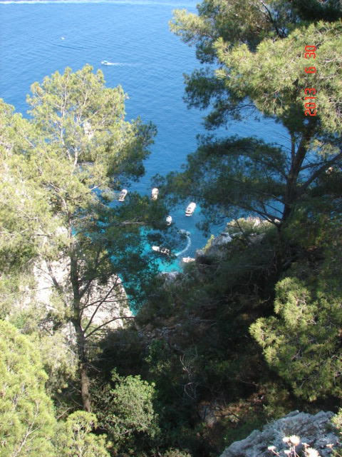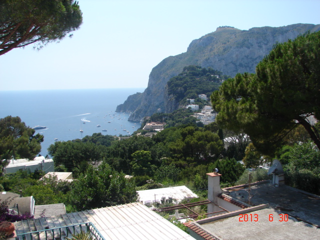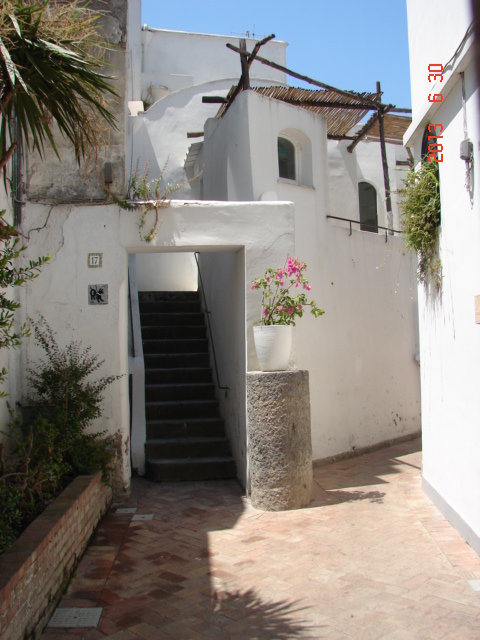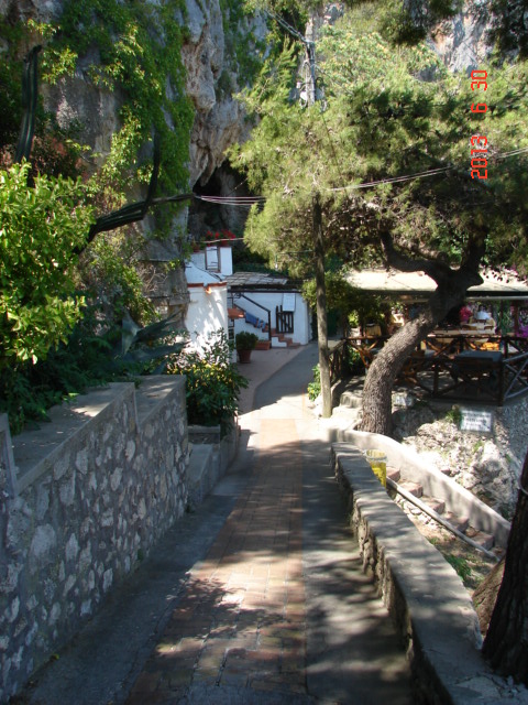 To get around the island you can always rent a moped but, you must know where and how to get around. Nevertheless, this is always a great way to get around the island. Unless you are like us, we decided to take the funicolare, mountain tram connecting the harbour with the town, up to Capri Town, where there are shops, restaurants, pensiones and hotels. On your ride up you see Ana Capri to the right. Just spectacular! Now, I highly recommend you walk for you will come across some beautiful paths that otherwise you will not see if you are in a car or taxi.