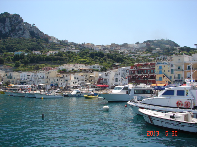 In Southern Italy, just south of Naples, is a spectacular island, which is a must to visit for a few days, if you are looking for that island feeling surrounded by crisp blue Mediterranean water and sea breezes yet, with a particular cache where VIP get away to, not only for its natural beauty but its cafes and shops, this is the place. Taking the high speed ferry from Naples will take approx. 45 min. and the ride is well worth it! Upon arrival at the island you can’t help but be in total awe of its natural beauty. A very picturesque marina!